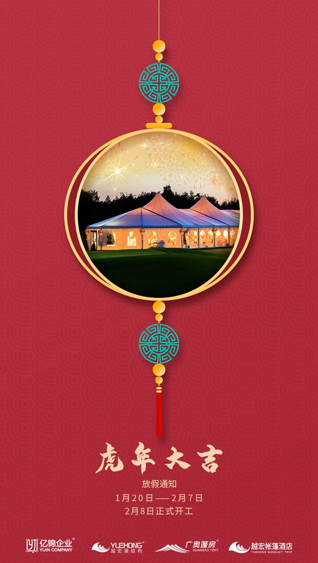 億錦企業(旗下越宏膜結構)2022年春節放假通知