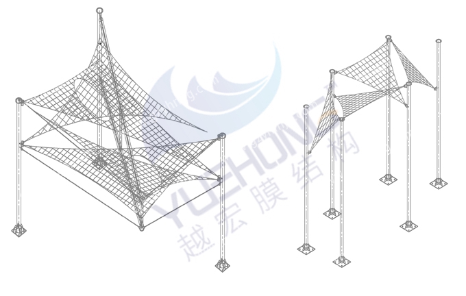越宏膜結構廠家的景觀膜結構是由鋼結構和膜材組成,分別有張拉式膜結構、索膜結構、骨架式膜結構、空間結構供選擇,根據不同場景進行設計出個性化膜結構。